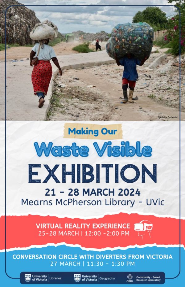 Geospatial Librarian Daniel Brendle-Moczuk co-organized and curate the “Making our Waste Visible & Knowledge Mobilization” exhibition at UVic Libraries with the Community-Based Research Laboratory (CBRL).