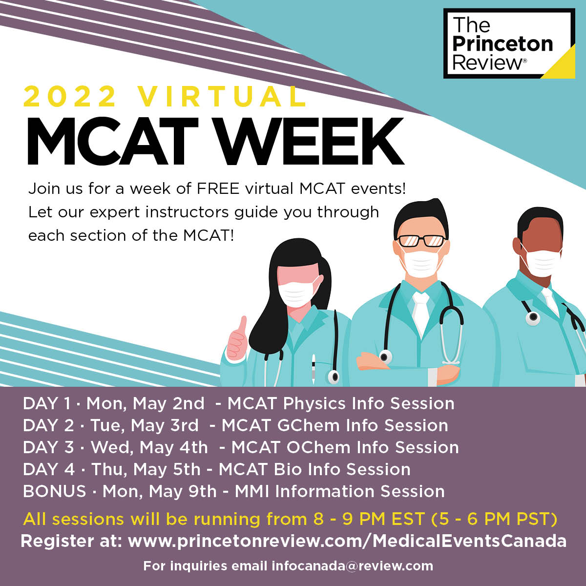 To register for all of these events for free, please visit: www.princetonreview.com/medicaleventscanada