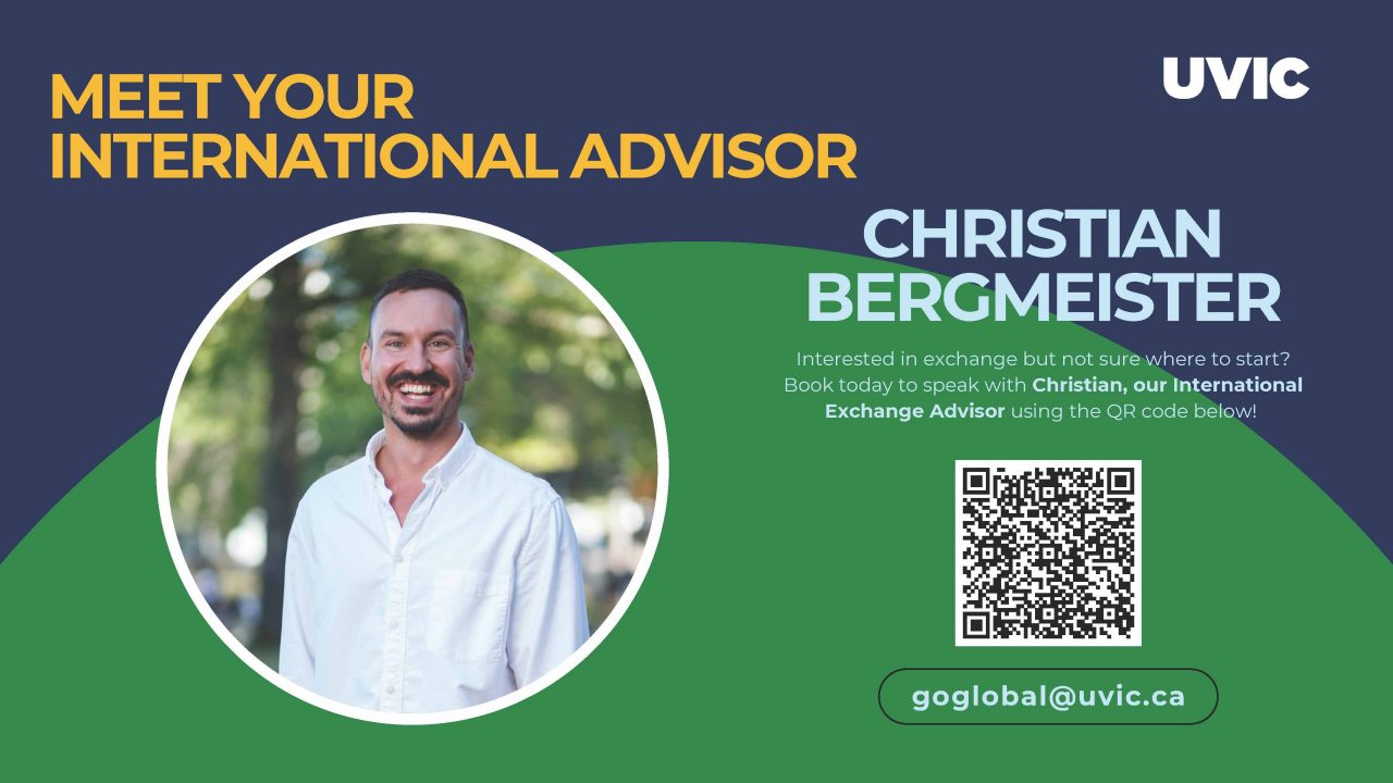 Any current and prospective exchange students are always welcome to book an appointment with our Exchange Adviser, Christian, or email us at goglobal@uvic.ca. We are more than happy to answer any questions or concerns regarding their exchange.