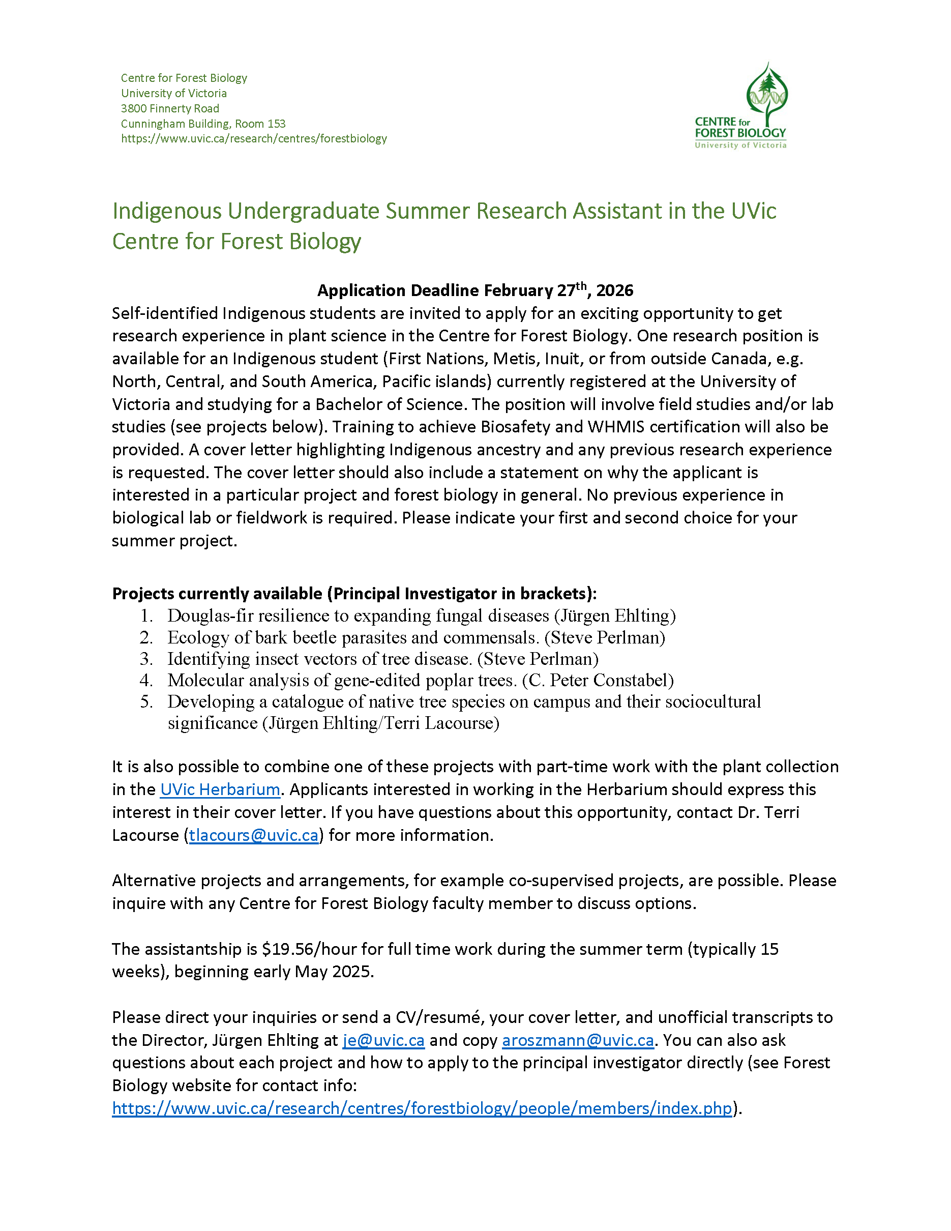 Please direct your inquiries or send a CV/resumé, your cover letter, and unofficial transcripts to the Director, Jürgen Ehlting at je@uvic.ca and copy aroszmann@uvic.ca.