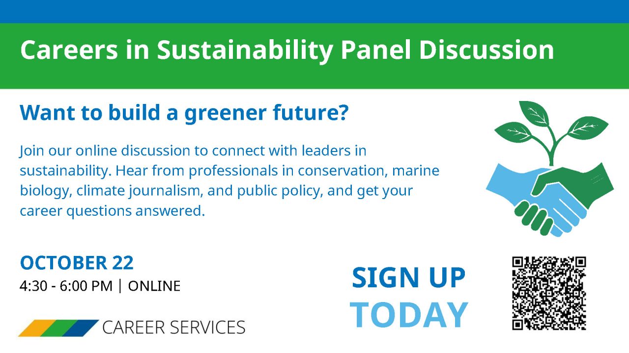 This online panel discussion connects you directly with a diverse group of professionals who are actively shaping the future of sustainability in our community and beyond. From hands-on conservation and scientific consulting to climate journalism and public policy, our panelists will share their unique career journeys, insights, and advice for students looking to enter the field. This is your opportunity to ask questions, learn about different sectors, and see the many ways your degree can make a difference.