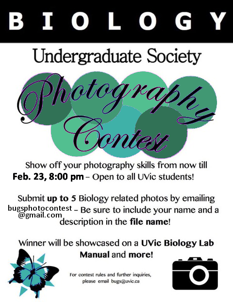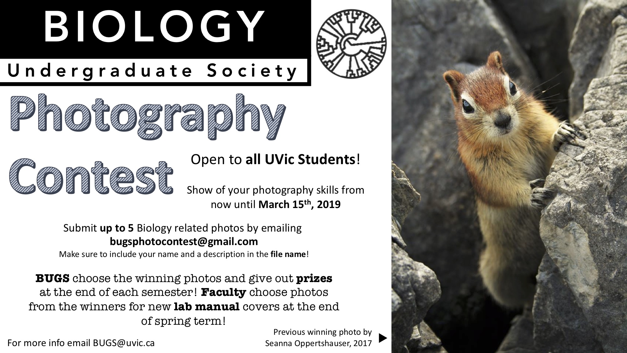The BUGS photo contest is back! Anyone may enter the contest, so don’t worry if you’re not a biology student. Send your submissions to bugsphotocontest@gmail.com. The rules are attached here and the deadline is March 15, 2019. We look forward to seeing your photos!