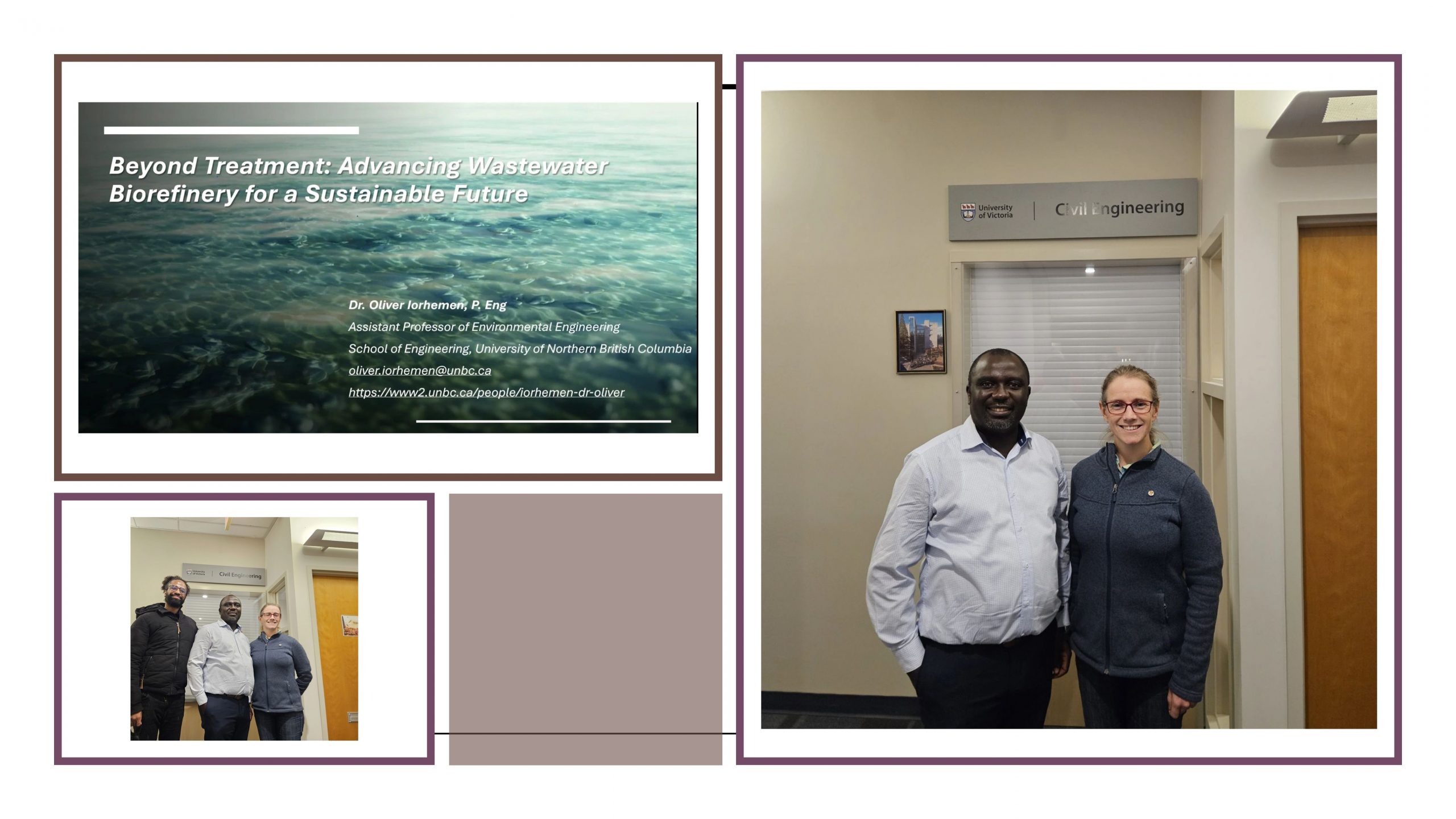 We acknowledge with respect that our work takes place on the lands and waters of the Lekwungen peoples, and that our presence here impacts the Songhees, Esquimalt and WSÁNEĆ peoples whose historical relationships with the land continue to this day. We seek to use our research skills to address historical and ongoing environmental injustices and to empower communities in Canada and internationally through interventions at all stages of the drinking water supply chain. We apply a Green Engineering and Chemistry lens as one of many perspectives on these challenges and opportunities.
